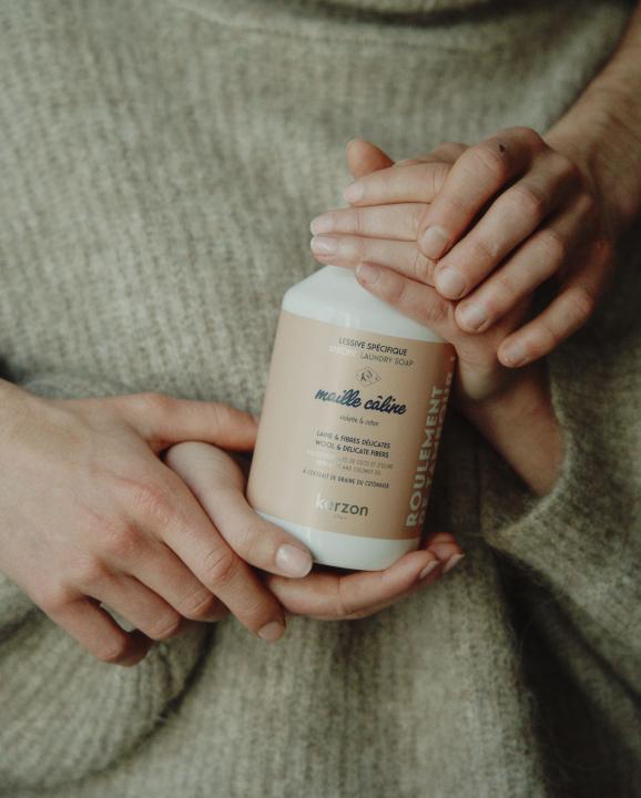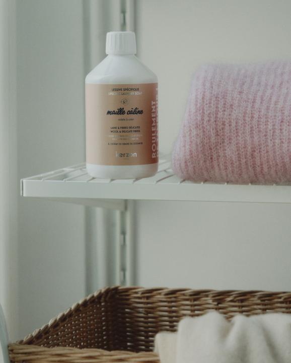 - Add the right amount of our specific laundry soap Maille Câline - Wool & Delicate Fibers
