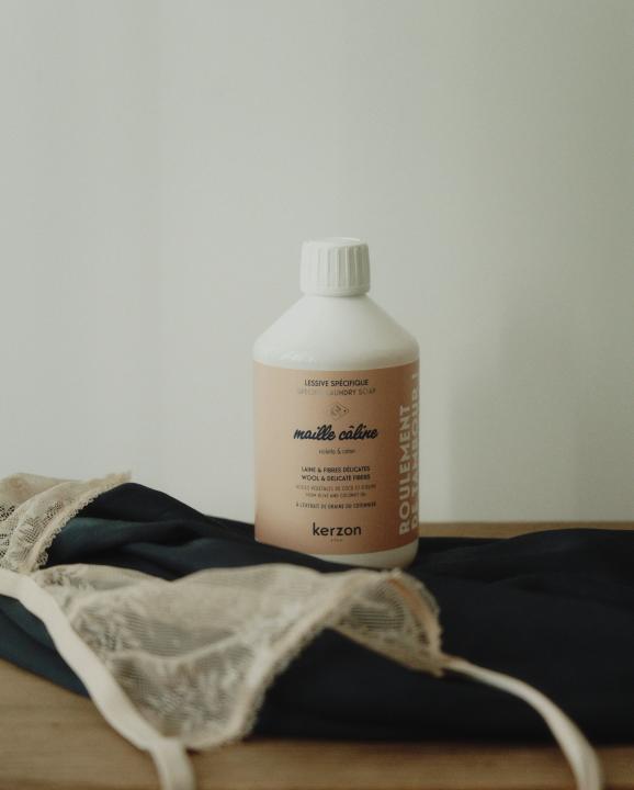 Your freshly sorted delicate laundry needs special care, and this is where the natural formulation of our Maille Câline laundry soap comes into play: