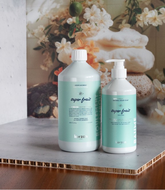 Two is always better than one! Discover this Super Frais duo composed of a laundry soap to take care of your textiles, and a liquid soap to gently cleanse and delicately perfume the hands and the body.