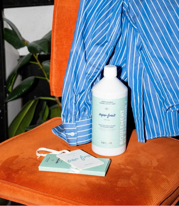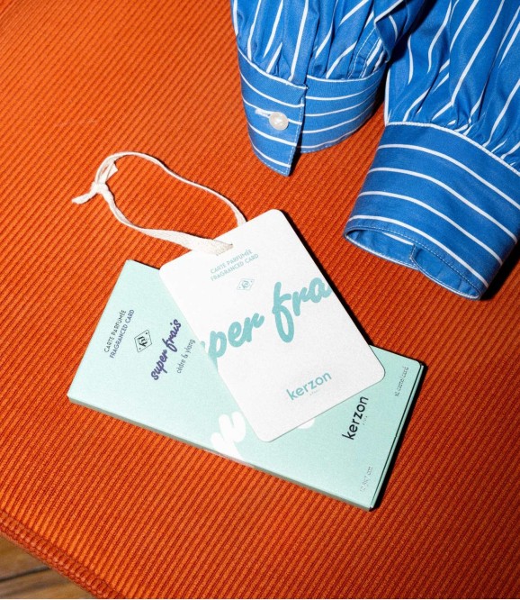 Care for your laundry with the Super Frais duo, featuring a natural laundry soap and a fragranced card. The laundry soap gently cleans while leaving a lasting fragrance, while the card extends the experience by scenting your drawers, wardrobes, and closets with your favorite Kerzon notes. A simple, elegant gesture to enhance the fragrance trail.