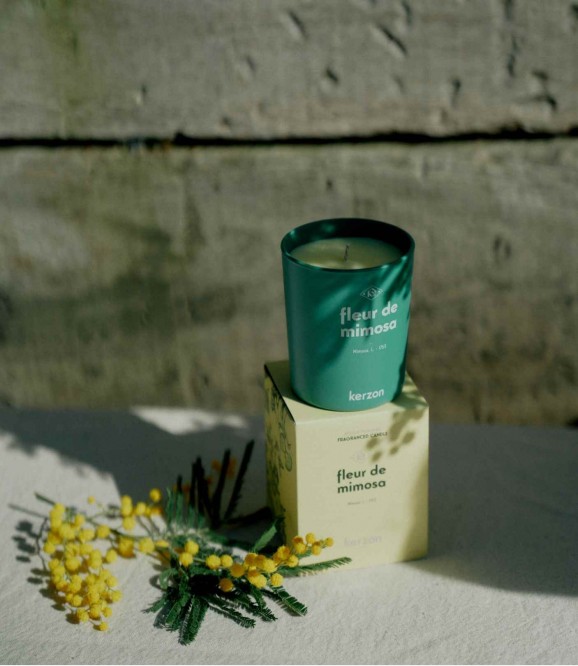 Solaire et lumineuse, Fleur de Mimosa rayonne d'une fraîcheur végétale éclatante, que l’on doit à l'étrange et méconnu Pistachier Lentisque. Le mimosa Kerzon dévoile sans artifices des notes de tête hespéridées, légèrement sucrées, un coeur floral irisé et un fond boisé cèdre et cachemire.