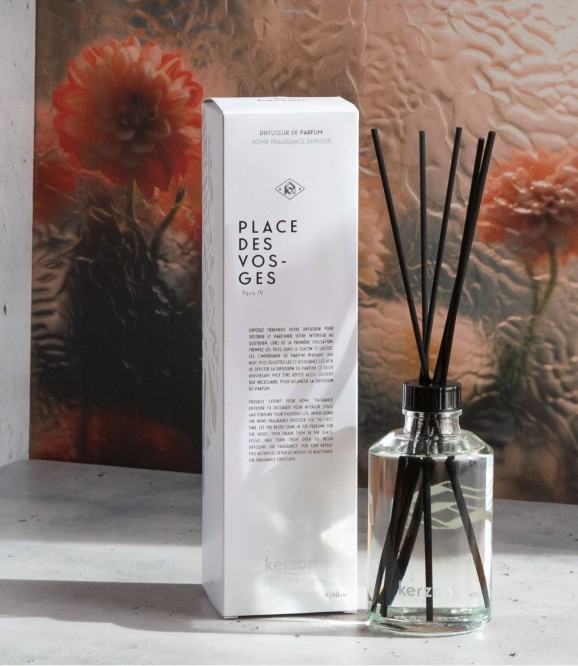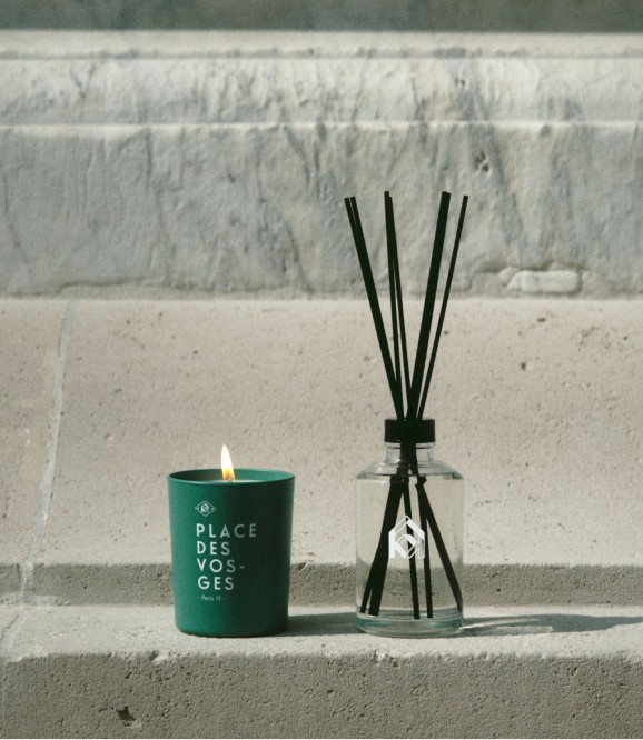 C'est au romantisme de la place, ses briques rouges et ses terrasses fleuries de géranium que nous rendons hommage avec cette senteur. Place des Vosges s'inspire des pétales duveteux de la rose bulgare avec une tête fleurie et un cœur sucré en accord de mangue, sur un fond frais et citronné de géranium.