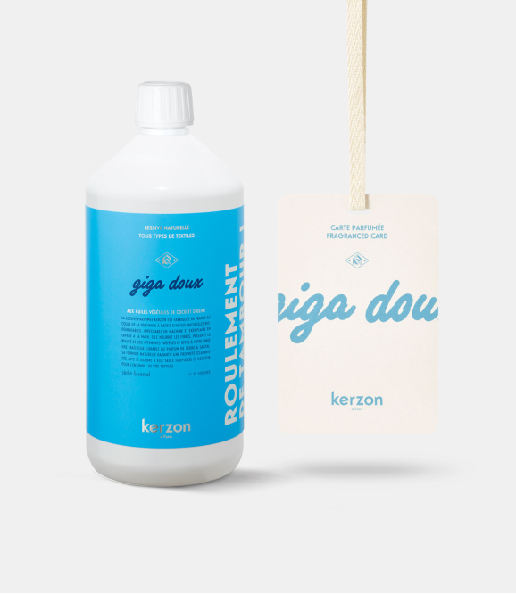 Prenez soin de votre linge avec ce duo Giga Doux composé d’une lessive parfumée naturelle et d’une carte parfumée. La lessive nettoie en douceur tout en laissant un parfum, tandis que la carte prolonge l’expérience olfactive en infusant vos tiroirs, dressings et placards de votre senteur préféré. Un geste simple et raffiné pour intensifier le sillage.