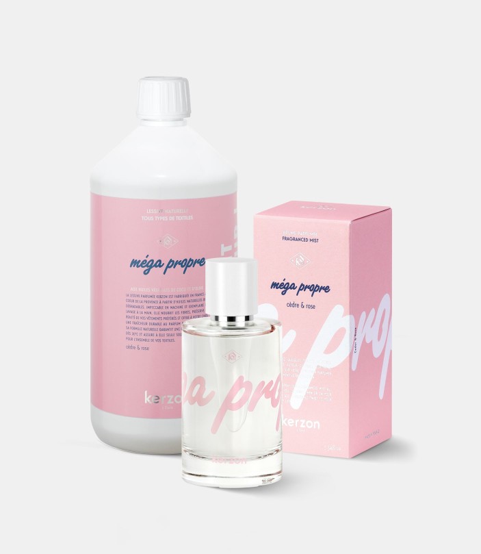 Enveloppez-vous d’un parfum et prenez soin de vos textiles avec ce duo composé d'une eau de toilette et d'une lessive naturelle multi-tâches.