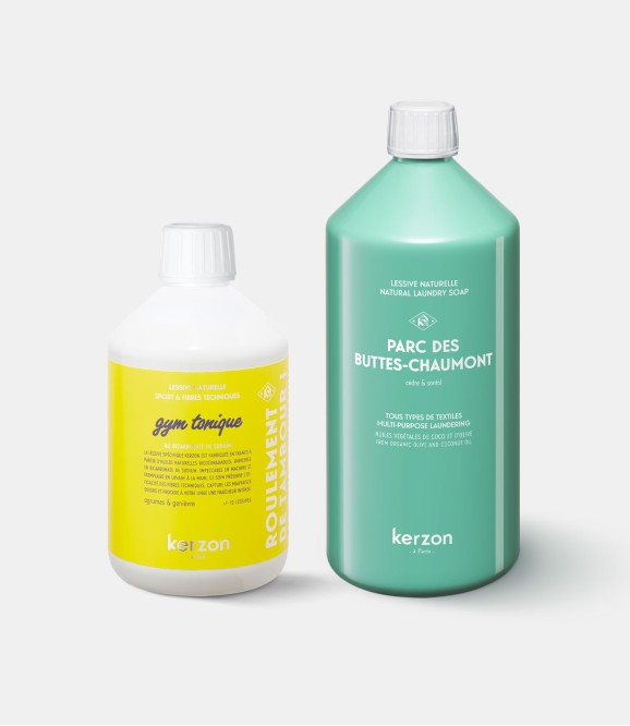 Pensé pour chouchouter l'ensemble de votre dressing, notre duo associe la lessive spécifique Gym Tonique, experte des vêtements de sport — à votre lessive multi-tâches préférée.