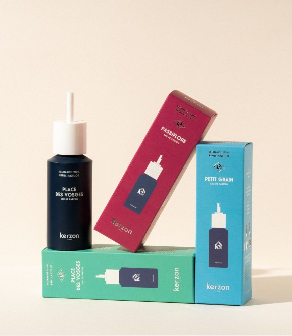 Fidèle aux valeurs de Kerzon, le flacon en verre de nos eaux de parfum est rechargeable en toute simplicité. La pompe en argent se dévisse pour laisser place à une recharge en aluminium recyclable, 100% issu du recyclage. Spécialement conçue pour s’adapter à notre écrin de verre, la capsule se visse au flacon jusqu’à libérer la juste dose de nectar précieux.