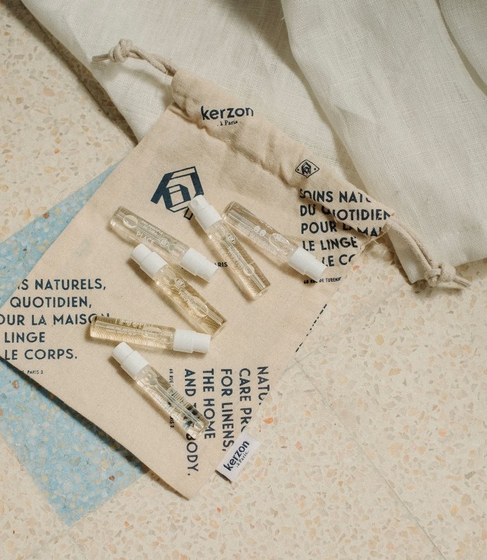 Découvrez nos eaux de toilette grâce à ce set découverte contenant 9 échantillons 2ml : Maille Câline, Petit Grain, Super Frais, Le Soleil, Giga Doux, Place des Vosges, Jardin du Luxembourg, La Tour Eiffel et Parc des Buttes-Chaumont et le tout dans notre petit pochon en coton bio.