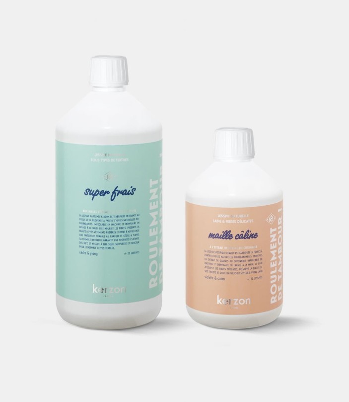 Le duo idéal pour un linge impeccable au quotidien, alliant douceur et efficacité. Un bidon de lessive Maille Câline, pour prendre soin de vos textiles délicats – cachemires, lainages, dentelle et soie – grâce à l'extrait de graines de cotonnier associé à un bidon de votre lessive multi-tâches adorée, pour assurer un nettoyage ultra-efficace, éliminer les taches tenaces et préserver les couleurs et la douceur de votre linge quotidien.